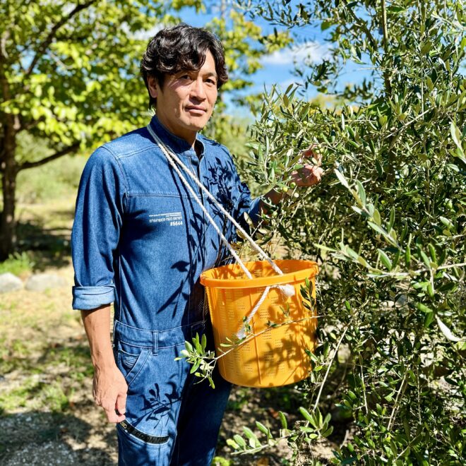 淡路島で実ったオリーブを手摘みで収穫しています。