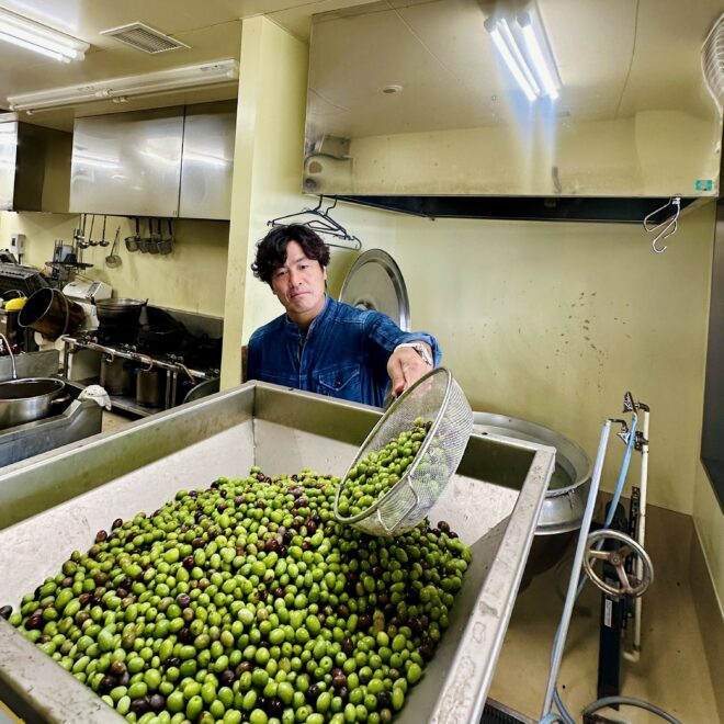 今回取材に伺ったレストラン太公望では2種類のエキストラバージンオリーブオイルを搾っています。