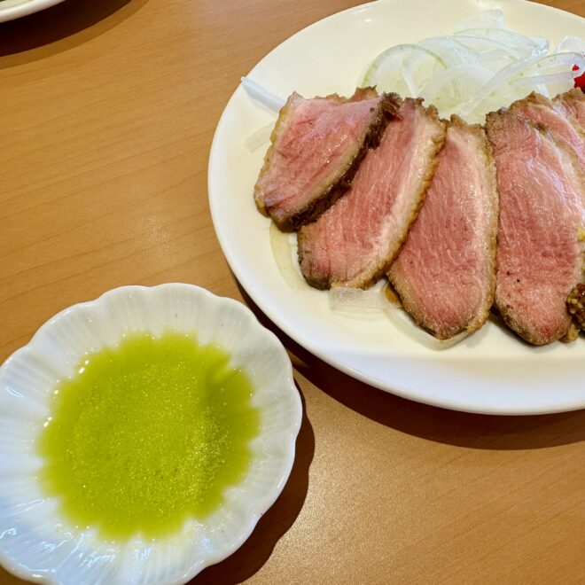 レストラン太公望の坂田さんおすすめの使い方は、鴨ロースや牛肉のたたきをエキストラバージンオリーブオイルと塩でいただくというもの。「油なのにお肉がさっぱり食べられる。お肉の甘味が引き立つね。料理に合わせるとオイルの風味にカドがなくなって優しくなってる。」と大畑。