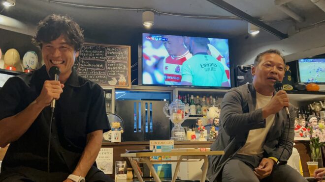 今回のイベント開催にあたり、会場の貸し出しから当日のサポートをしてくださったNo Side Clubのマスターをはじめスタッフの皆様、当日足を運んでくださったお客様、プレシーズンが開幕したばかりの多忙の中で参加してくださった田中澄憲氏には大変お世話になりました。
