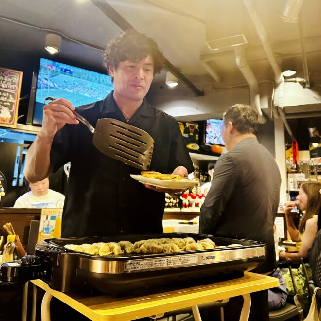 九条ねぎ餃子は大畑がいちアスリートの枠を超えて食材の選定から完成までを監修したオリジナル商品。