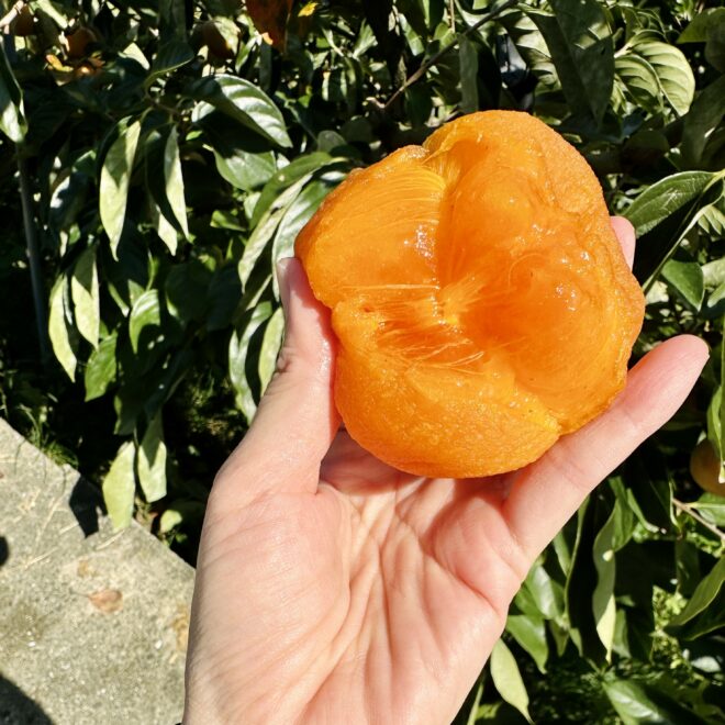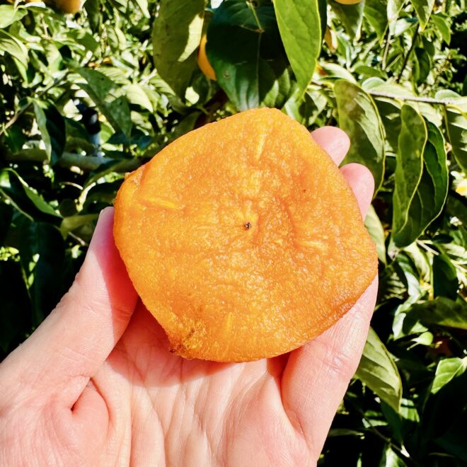 きれいなオレンジ色のあんぽ柿、干し柿とはちょっと作り方が違います。後で詳しく解説しますね。