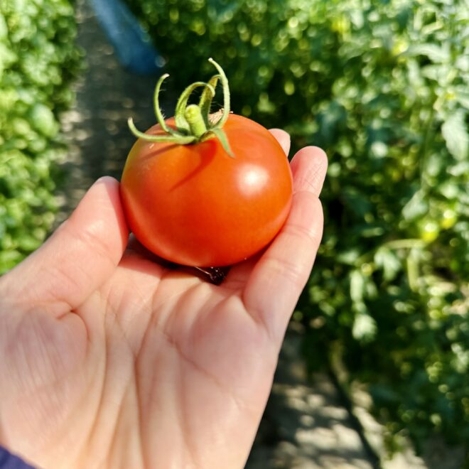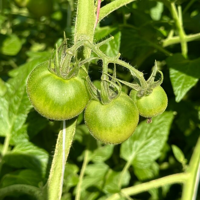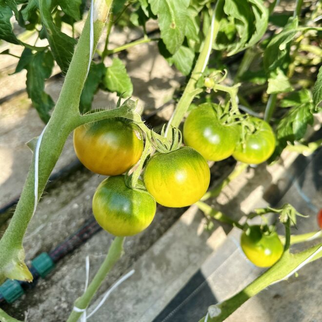 まず栽培している時にヘタの周りに緑の濃い部分があるトマトは甘くなります。