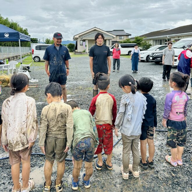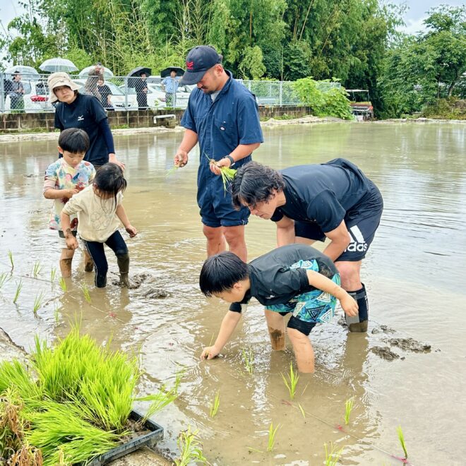 大本商店のみなさんと一緒に恒例の「田植え体験」と「泥んこラグビー」を開催!