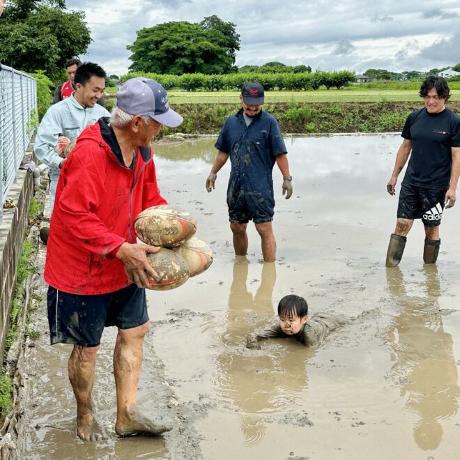 毎年恒例、熊本県玉名市での田植えと泥んこラグビー!