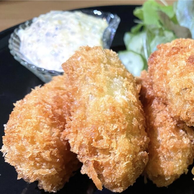 牡蠣の生産量日本一の広島県。瀬戸内海の栄養豊富な海で育った牡蠣を、サクサク食感を残して中はジューシーなカキフライにしました!