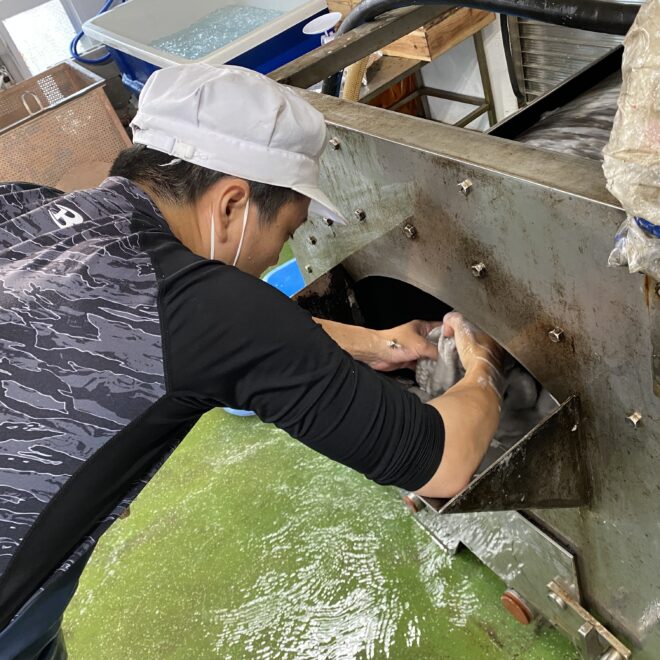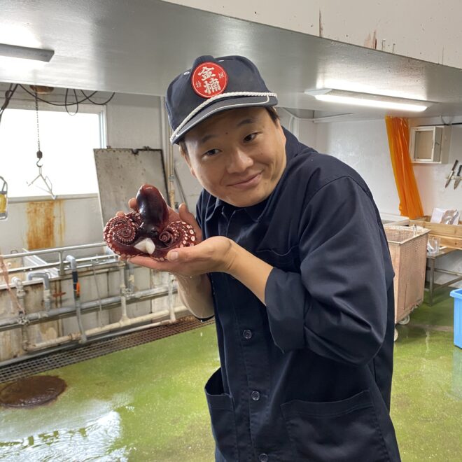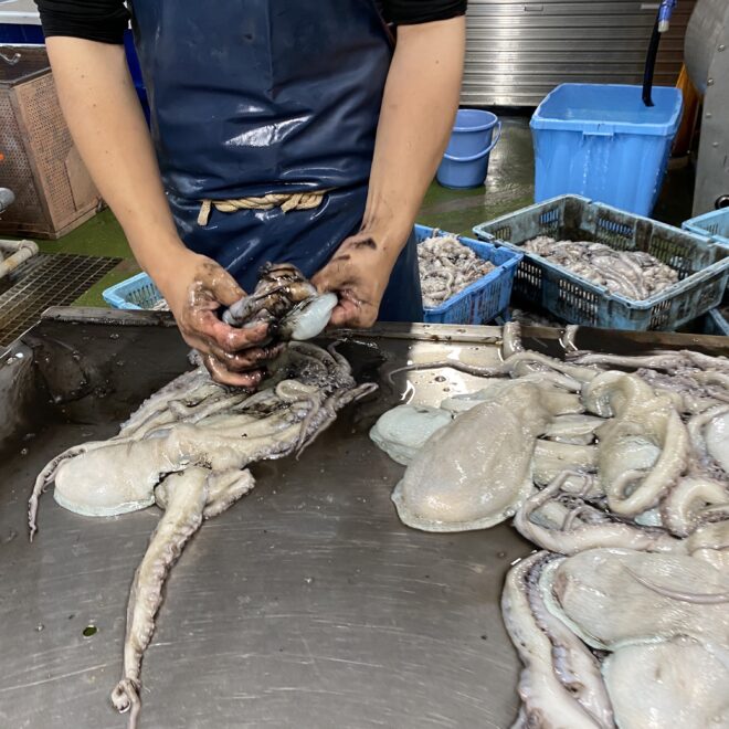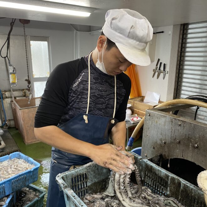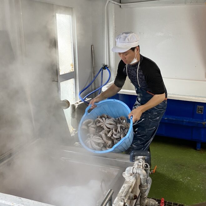 金楠水産の明石だこを釜揚げするまでの工程に密着しました。