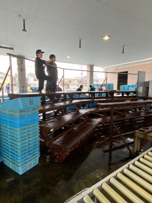 生きてるんだからそりゃ文句なしに鮮度が良いわけなんですが、それが出来るのも漁師・組合・加工会社の3者がタッグを組んで高い鮮度管理を実現しており、どれか一つでも手を抜くと台無しになってしまいます。それぞれが鮮度を保つための工夫・努力を怠らないことが、鮮度抜群の秘訣だそうです。
