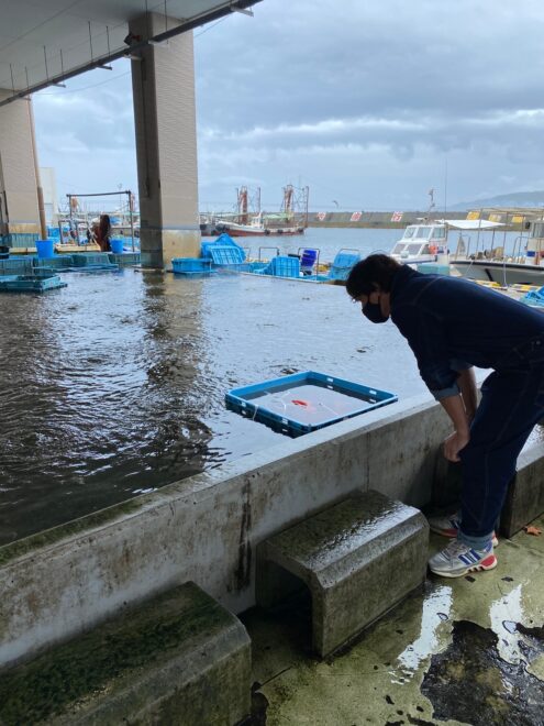 明石浦漁港が扱う魚は『活魚』、一部を除いていわゆる生きた魚がほとんどです。これまで番組のロケなどでもそこそこ色んな漁港にはお邪魔してきた大畑ですが、生簀のある漁港にはびっくり!!