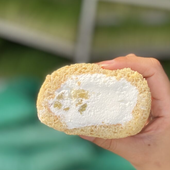 こちらは美〜ナスをコンポートにして、ロールケーキに。ブドウのような梨のような食感・味わいで、めちゃくちゃ美味しい!