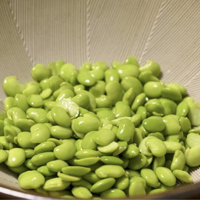 料理コーナーの撮影では、おばあちゃん特製のずんだあんを作るため、カメラの後ろでひたすら鞘から豆を出す作業をしていたのですが、隙あらばと口に運んでいたのは私です。