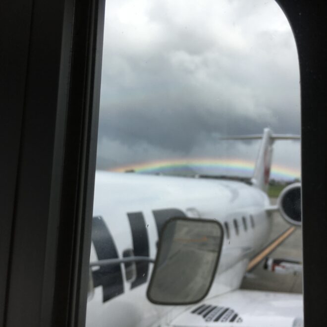 そして帰りは飛行機で帰れたのですが、くっきりと見えた虹が見送ってくれたことをよく覚えています。