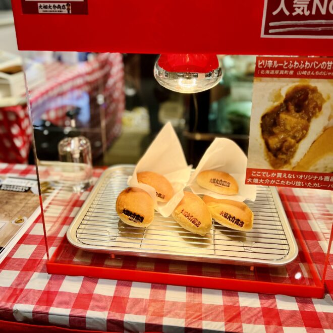 大畑大介商店のオリジナル商品『ダイスケの焼きカレーパン』と、