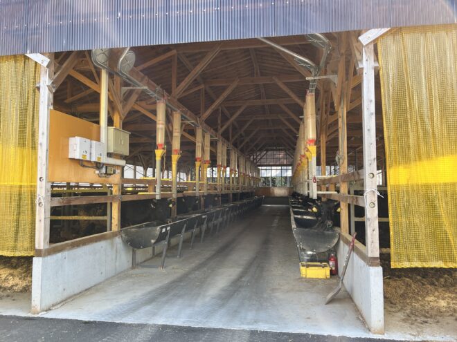 そのため、物理的にも風がよく通ります。衛生的で牛たちものびのびと気持ちよさそう!