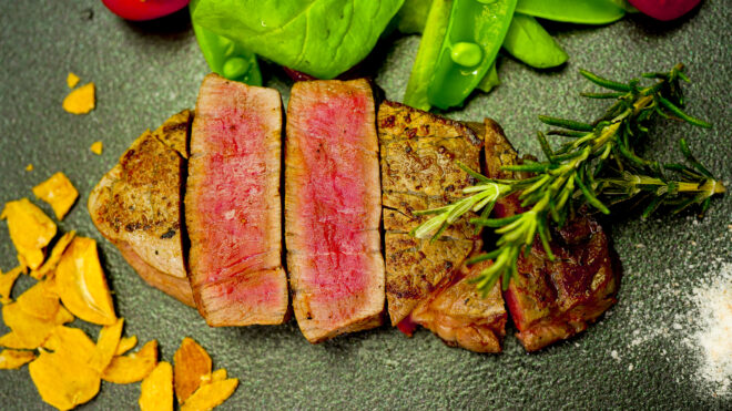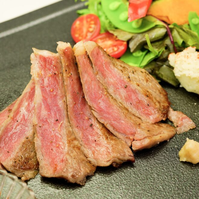 筋肉が繊細で細く滑らかで、サシが全体的に美しく入っており、甘く深い味わいを生み出しています。