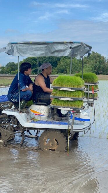 最後は大畑、大西さん2人仲良く田植え機での田植えにもチャレンジ。