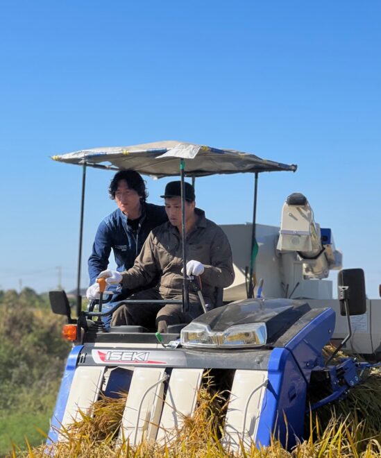 お米が炊けるのを待っている間は、大畑と大西さんはコンバインで稲刈りを行いました。