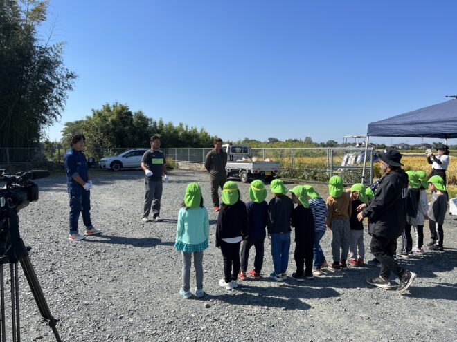6月の訪問から、半年。大本商店の南さん、公さん、参加してくれた大野保育園の皆さん、そして玉名の皆さんと再会、一緒に収穫体験をすることが出来、大畑一行も感慨深い1日となりました。
