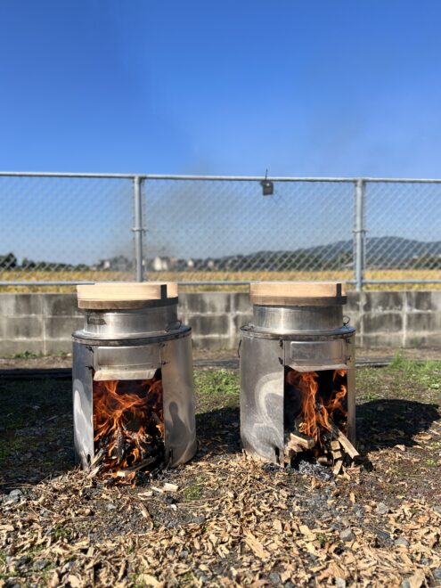 予想以上の大量の薪が割れた所で、火を起こし、炊いていきます。