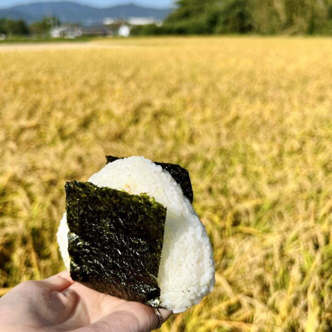 ふっくら、ツヤツヤの炊き立てのお米をおにぎりにし、待ちに待った実食です。