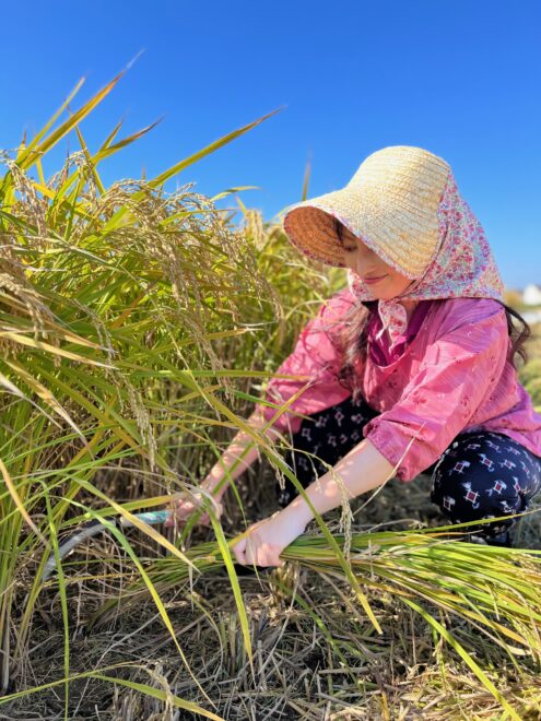 普段、稲刈りは機械で行うので、手で刈るのはとても新鮮な体験でした。