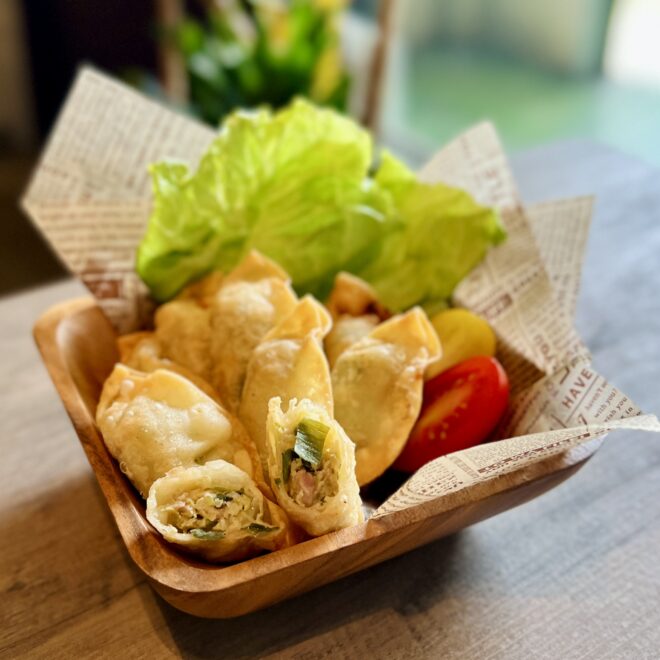 九条ねぎは大きめにカットし、ふんだんに混ぜ込みました。