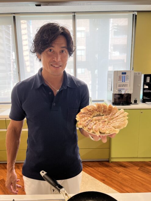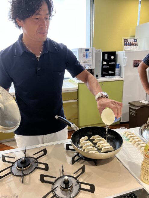 試食会では普段から餃子を焼くのは自分の役目ということで、大畑自ら餃子焼きを買って出ます。