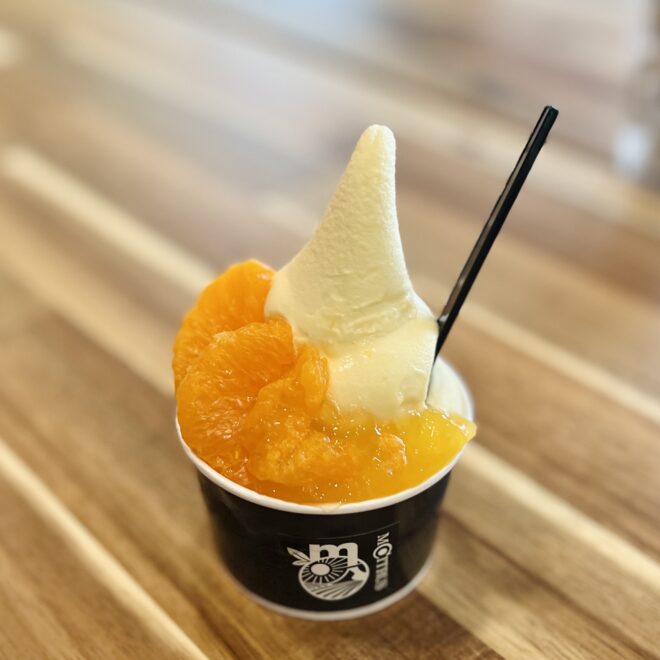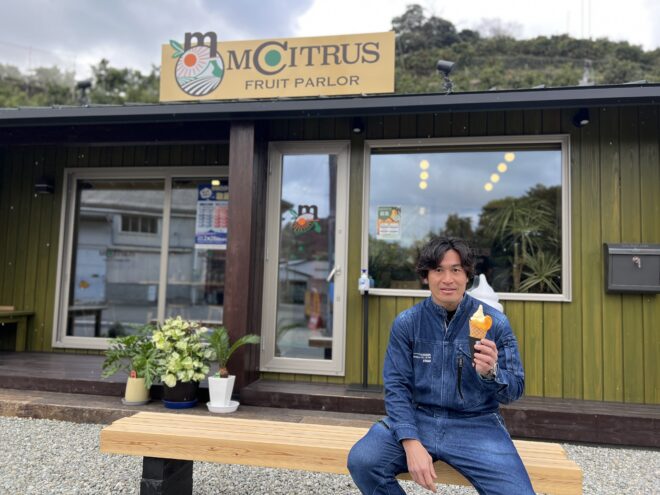 主井農園さんのM.CITRUS FRUIT PARLORというおしゃれなお店で、季節の柑橘のソフトクリームをいただきました。