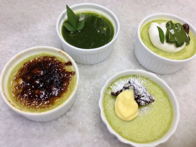 あるお客様から「抹茶スイーツ作りにとっても良い商品ですね」とのお声をいただいたので、試しにプロのパティシエさんにこの抹茶ペーストを使っていただきました。