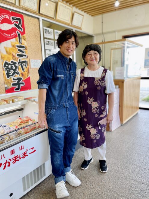 マーミヤさんの取材の後ピーチパインの平井農園さん(西表島)のところにお伺いしたのですが、大畑が大量生産したおにぎりかまぼこをお裾分けしたら奥様が「嬉しい!大好きなんです!」と大喜びして下さいました。