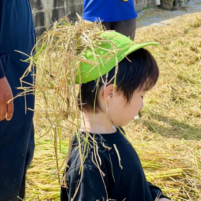 子供たちは何でもおもちゃにしてしまいます。楽しみながらの稲刈り体験、子供たちの良き学びと思い出になりますように。