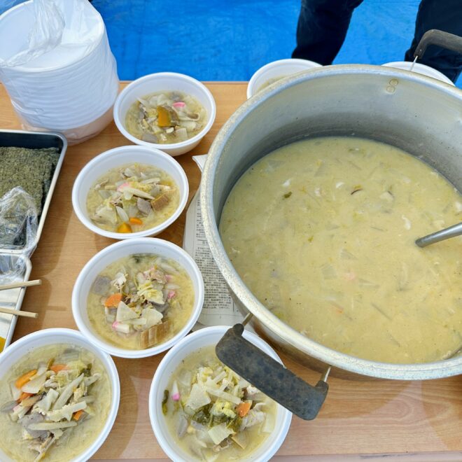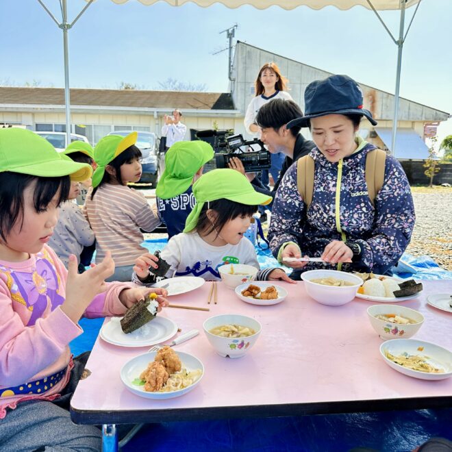 野菜がたっぷり入った豚汁に大野保育園の先生方の愛情を感じます。担当も子供たちと一緒にいただきましたが、とっても美味しかったです。ありがとうございます。
