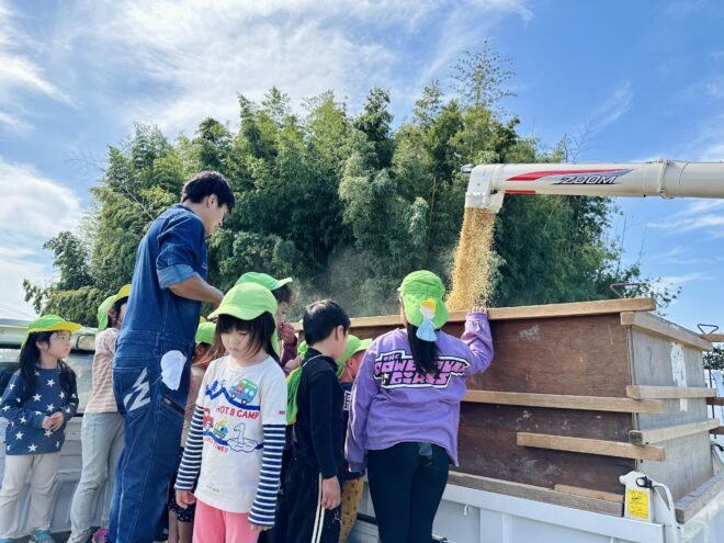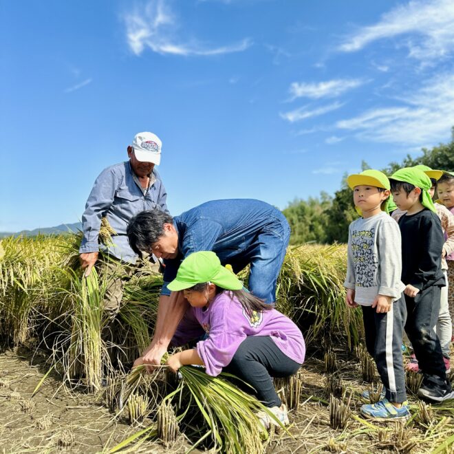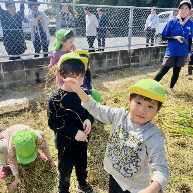 6月に熊本県玉名市の大野保育園の子供たちと植えたお米が収穫の時を迎えたためです。
