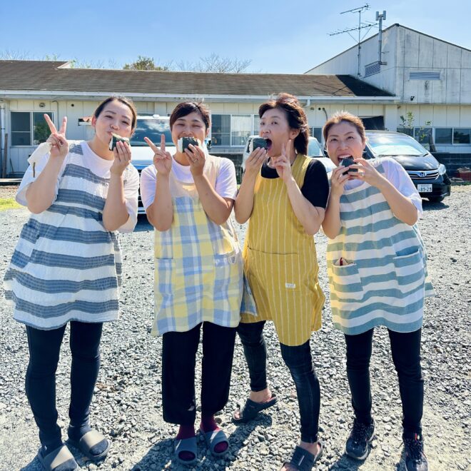 おにぎりの大きさに驚きながらも笑顔の先生たち。