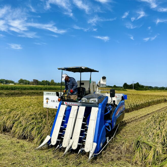 この日は絶好の稲刈り日和だったようで、周辺の田んぼでも農家の方々がコンバインで稲刈りをされているのが見えました。
