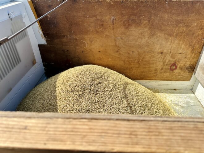 稲刈りした直後の籾は水分が残っており、乾燥させないとお米の品質が落ちてしまうそうです。
