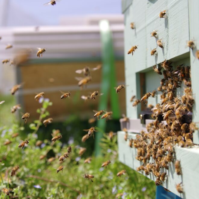 人間は蜂たちがせっせと集めたご飯を分けてもらっている、ということになります。