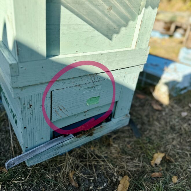 巣箱に近づくにつれてブンブンをいう西洋ミツバチたちの羽音が聞こえてきました。刺されたらどうしよう!