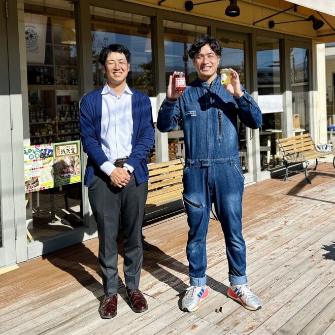 穏やかな笑顔が素敵なはなのみの2代目 小宮準也社長(左)と大畑(右)