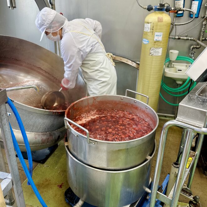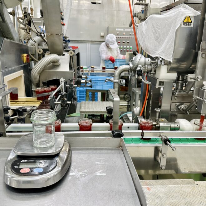 小宮社長によると大手はもっとシステム化されており、素材をラインに入れて容器にジャムを充填するまで人の手を入れる余地はないそう。