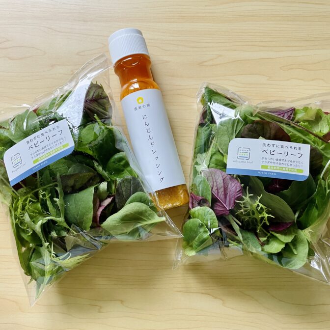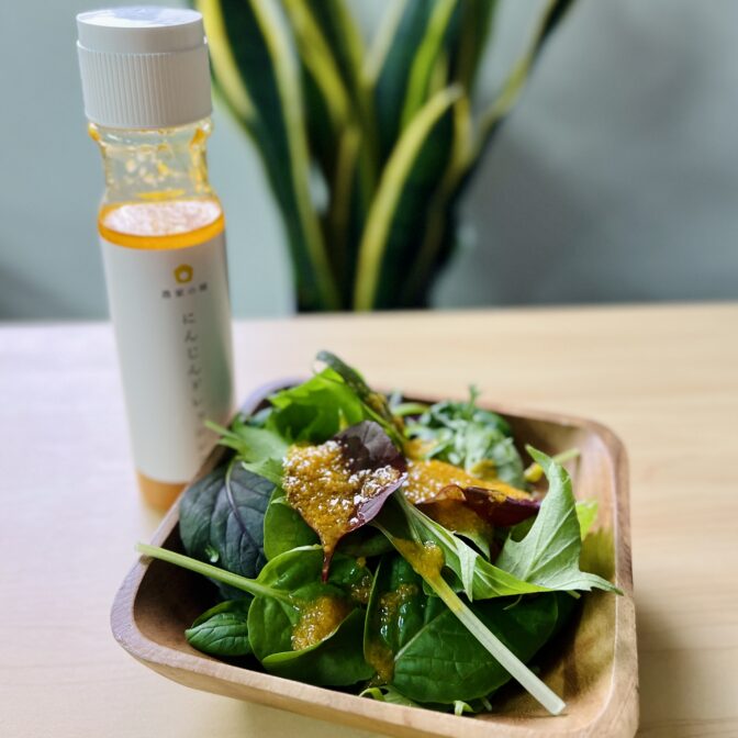 大畑もスタッフも大好きなよこいファームさんオリジナルの人参ドレッシングと一緒にお届けします。