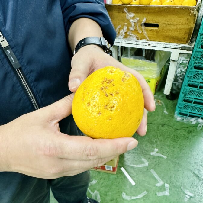 フルーツを選別していると必ず出てくるのが「キズ」、「黒ずみ」、「焼け」、「変形」などがある「訳あり品」。