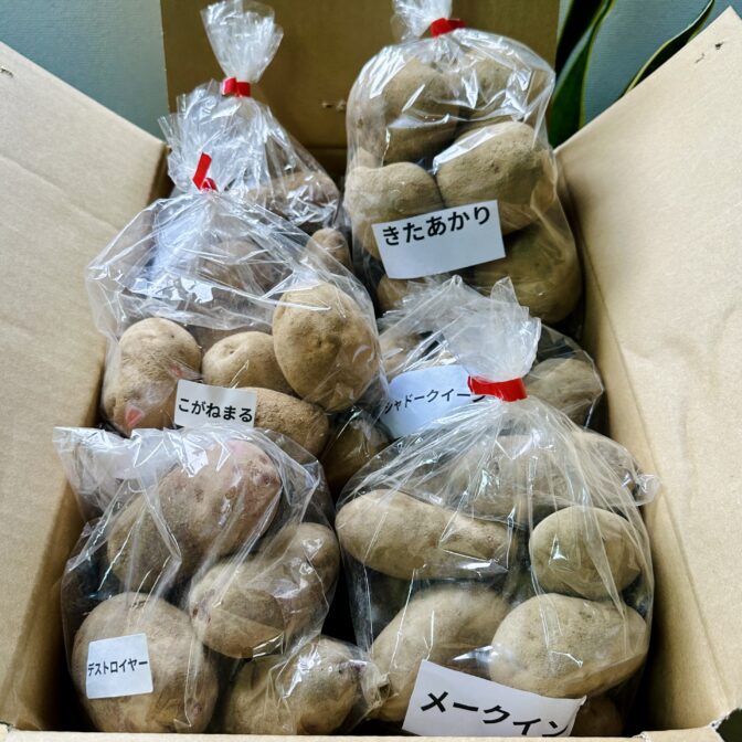 品種:メークイン、キタアカリ、デストロイヤー、インカのめざめ、ノーザンビー、シャドークイーン