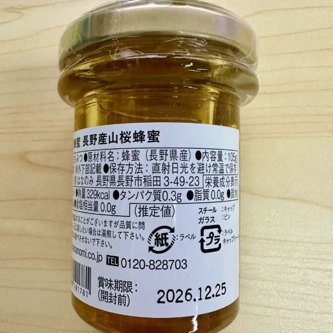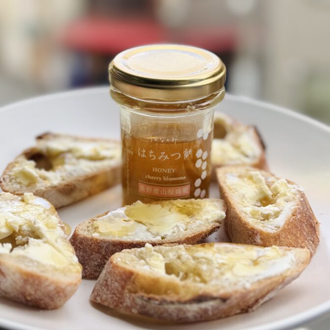 ■長野産山桜…ほのかにチェリーの香りが残るはちみつです。味は濃厚で、はなのみ養蜂担当さんイチオシ!