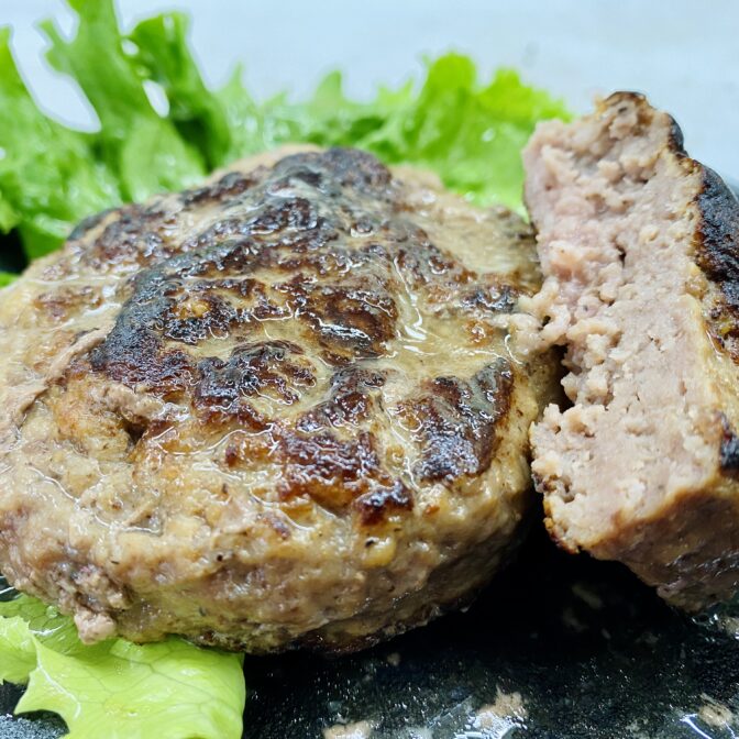 ◆ハンバーグは表面だけ焼き、肉汁と旨味を閉じ込めます。湯煎で食べれます。