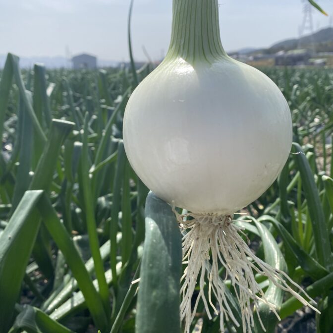 瀬戸内の温暖な気候で冬も積雪がほとんど無く、海に囲まれた淡路島。その中でも美味しい玉ねぎの産地といわれる南あわじ市。三野青果さんが作る新玉ねぎは、ミルクのように白くて甘いので『プレミアムミルク玉ねぎ』と名付けたそうです。