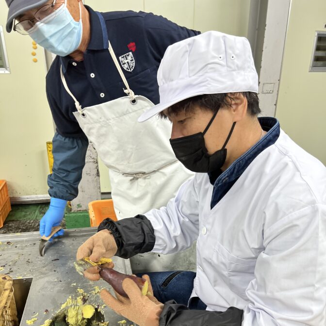 芋を蒸してから皮を剥いて干して商品となるまで、職人さんの手作業です。原材料はさつまいもだけで添加物は一切不使用、芋だけの甘さ、しっとり感がぎゅーっと凝縮されています。