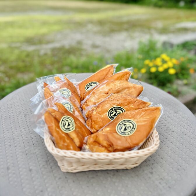 伊吹ハムで2020年に登場して以来人気のスモークチキン5個と、同じ製法で作ったスモークささみ3個をセットにしました。