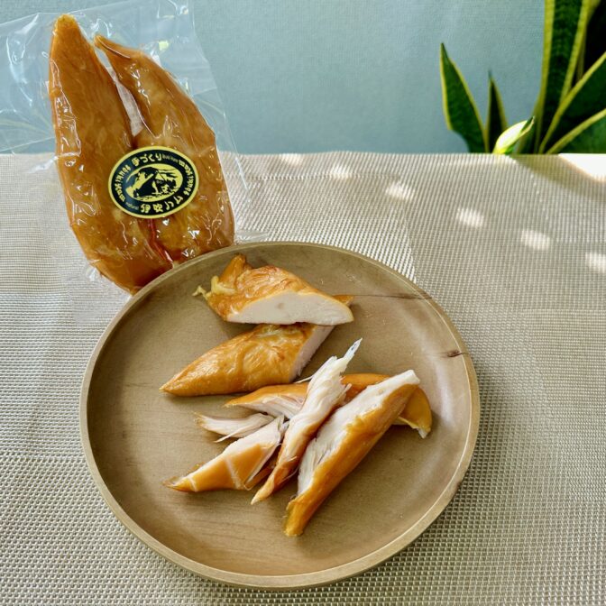 - 50歳近くなって今まで通り生活していたら、だんだん下腹が出てきてしまって遂にジム通いを始めました。トレーナーさんいわく、やはりタンパク質が大事とのこと。食事に制限があっても味と質(国産の鶏肉はポイントが高いです)は妥協したくないのでこのチキンを買ってみました。まず驚くのは、パサパサ感が全然ないこと。味も美味しいし、スモークはクセがないです。しっかり筋肉の繊維?も残っているけどお肉は柔らかいです。ちょっと贅沢だけど、賞味期限も割と長いので自分でタンパク質が用意できない時用や、頑張ってトレーニングした後のごほうびに良さそうです。美味しいから夫や子供が食べちゃいそうですが。