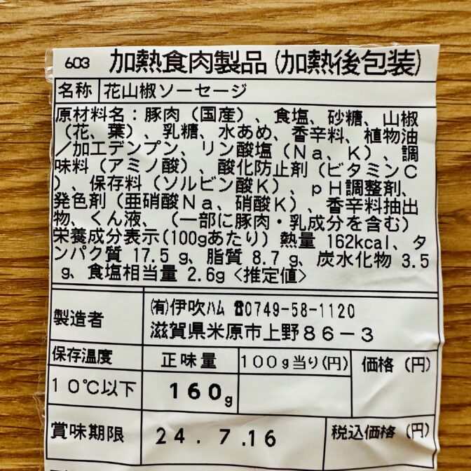 《内容量》花山椒ソーセージ(160g)※一部に豚肉・乳成分を含む